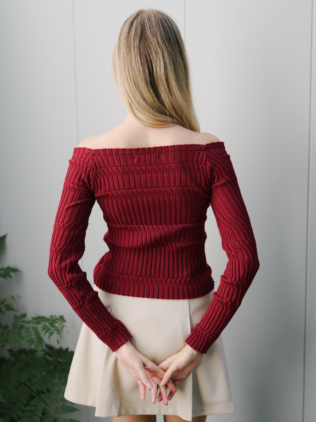• Off the shoulder, long sleeve top